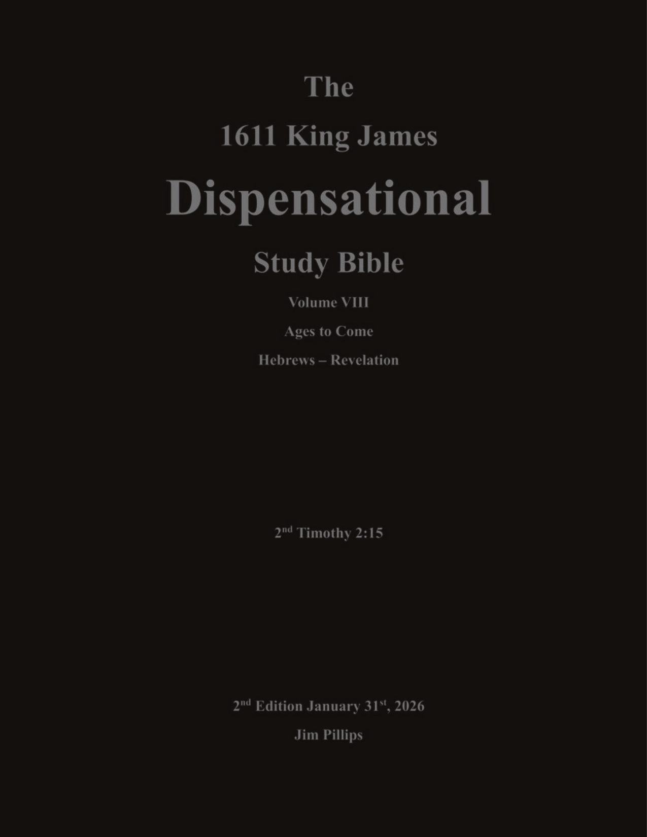 The 1611 King James Dispensational Study Bible Volume VIII covers the Hebrew Epistles of Hebrews - Revelation. They are written to the Little Flock of Jews in Jesus' day, and those going through the time of Jacob's Trouble (See Jeremiah 30:7). These 9 epistles are not written to the body of Christ, but all the Bible is written for us. The doctrine is these books are the same as those found in Volume VI Matthew - Acts 8, because after the Rapture Israel's 70th Week will begin. and these books serve as survival manuals for those going through that terrible time. I hope you enjoy reading them as you learn better how to rightly divide the word of truth. 2nd Timothy 2:15. Brother Jim Phillips