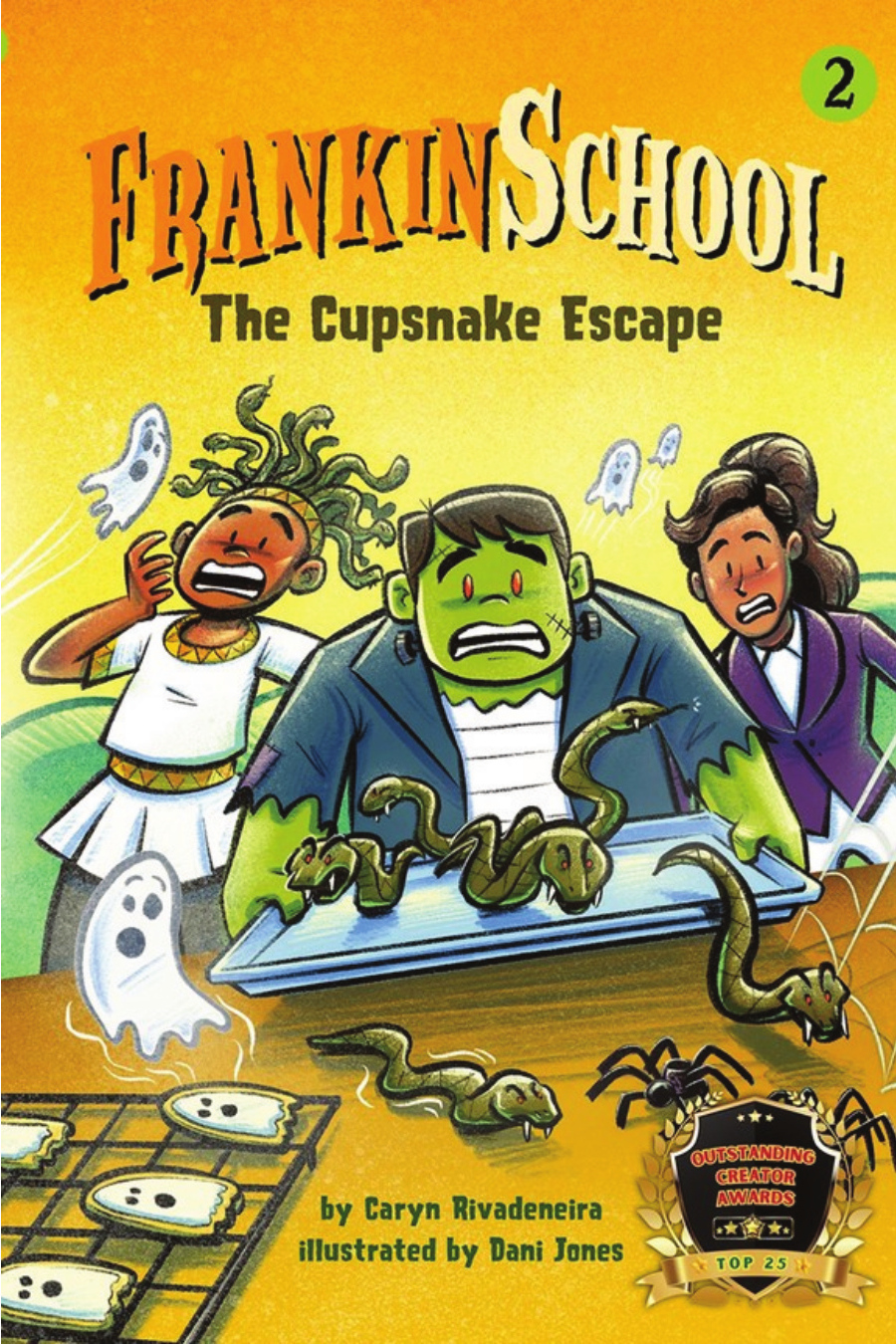 Frankinschool: The Cupsnake Escape is the second book about a boy named Fred who turns into "Frankenstein's monster" whenever he writes his "What-if" assignments. Fred and Luisa find themselves in trouble once again when the new student mixes up recipes at their class’s bakery field trip leading to snakes running amok. While the students scramble out of the school in fear, Fred and Luisa suspect their old friend Frank is behind the Great Cupsnake Escape. Once again they put their creativity, their cooperation, and their courage to the test—but will it be enough to save the school from the snakes?