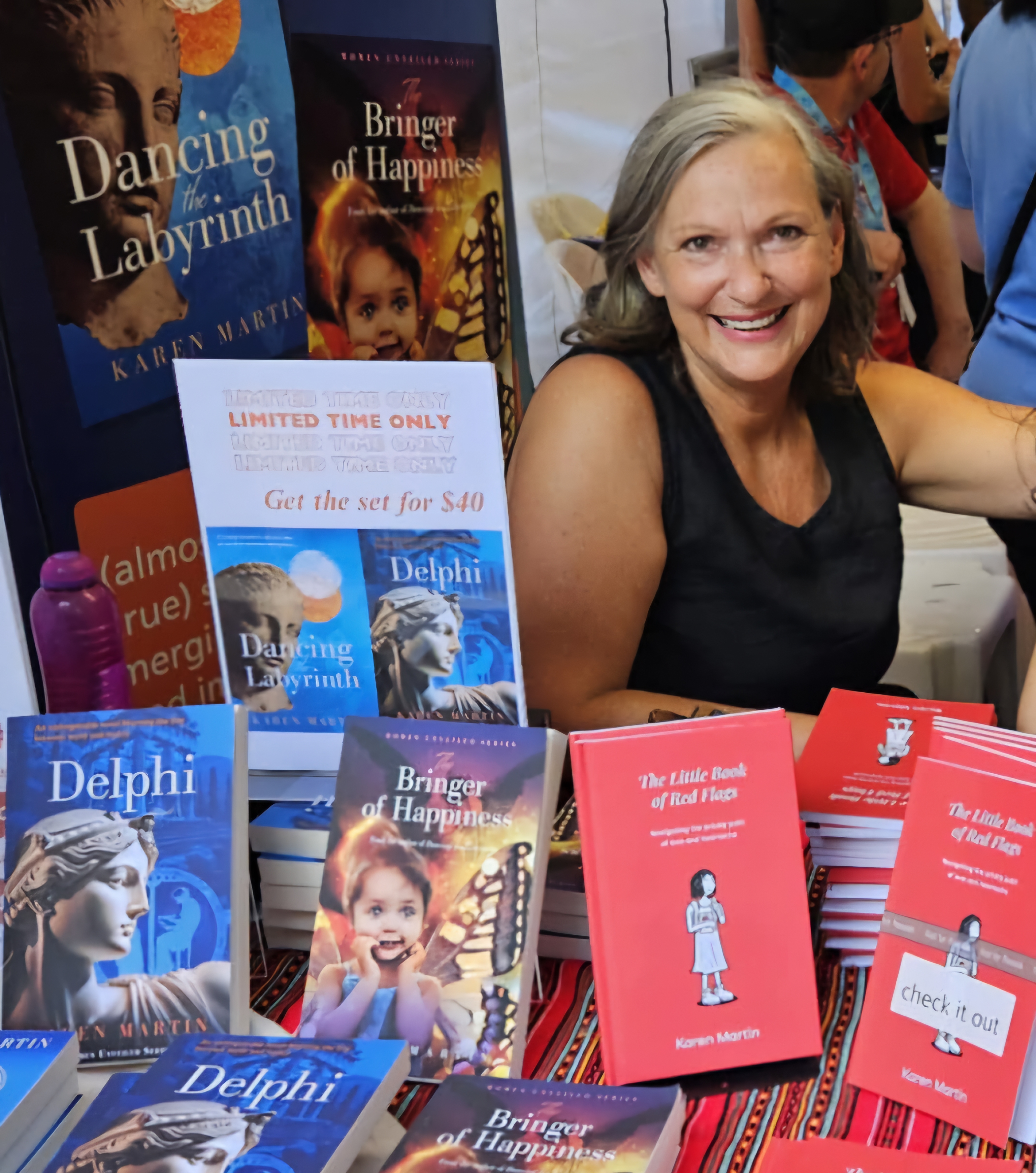 My debut novel Dancing the Labyrinth was written while living in Crete. The Greek translation is traditionally published by Radamanthys Publications. The English version, independently published through KazJoyPress was awarded the Eyeland Book Award 2024 for self-published works. The Bringer of Happiness was inspired from Languedoc folklore of Mary Magdalene and her connection to Montsegur. Delphi is the sequel to Dancing the Labyrinth, but can be enjoyed as a stand alone novel. The novella, Hypsipyle and the Curse of Lemnos retells the Greek myth through a feminist lens. These books form the thematic series Women Unveiled and share a distinctive feminine narrative probing societal boundaries. Women Unveiled blends Greek mythology, history and imagination in the telling of (almost true) stories. As a sideline, I created two non-fiction books - The Little Book of Red Flags and The Little Book of Apologies, which offer an illustrated and humorous reflection on relationships.