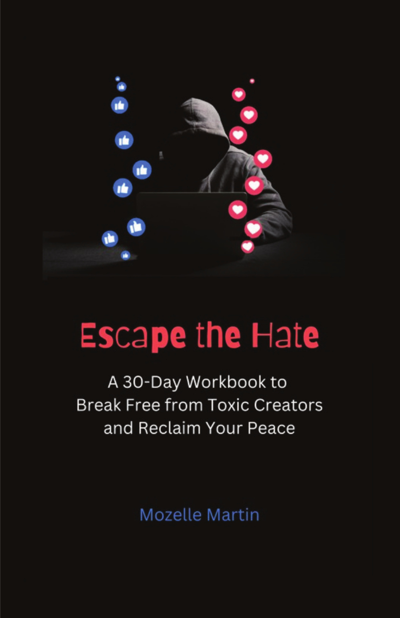 In today's digital age, navigating the murky waters of online toxicity is a challenge many face. "Escape the Hate" is your 30-day guide to liberation from toxic digital influences and the restoration of inner peace. Authored by Mozelle Martin, an expert in mental health and forensic handwriting since 1987, this 98-page book offers a unique blend of professional insight and personal experience in overcoming the negativity that pervades the digital landscape. Embark on a transformative journey with Martin, spanning 30 days of self-discovery, reflection, and growth. Each week unveils new reflections and exercises, equipping you with the skills and resilience to mindfully navigate the online world. You'll learn to recognize toxic influences, establish healthy boundaries, and reclaim your peace. But "Escape the Hate" is more than a personal guide; it's a call to action. By understanding your digital footprint and making responsible choices, you become a catalyst for positive change, contributing to a kinder online community. Join Mozelle Martin in escaping the hate and shaping a positive digital world. This powerful detox journey is not just about transforming your digital habits; it's about leaving a legacy of kindness and positivity. Your journey begins now.