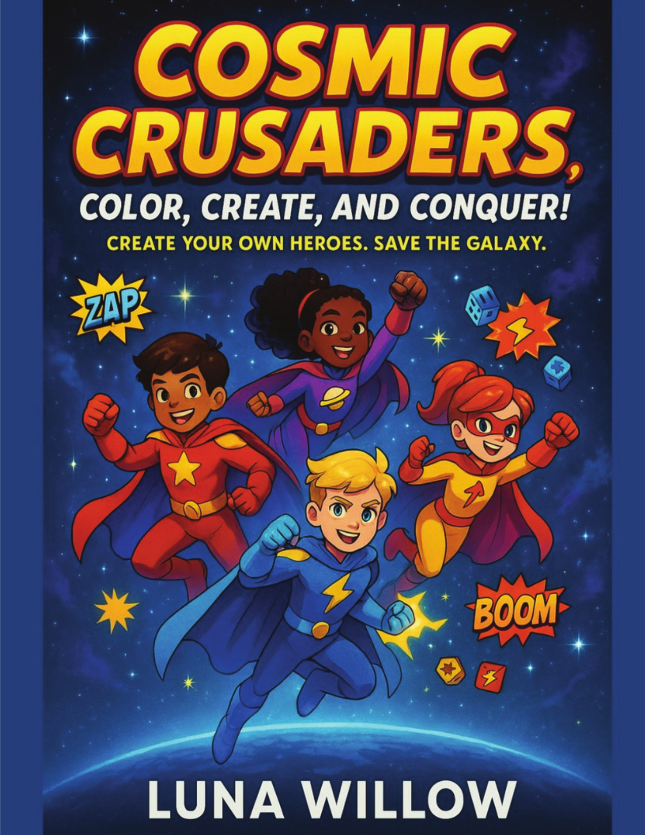 Blast off into a universe of creativity. Cosmic Crusaders: Color, Create, and Conquer! is an action-packed space adventure coloring and activity book for kids ages 6–12, filled with heroes, villains, alien worlds, puzzles, and challenges that invite kids to color, imagine, and complete each mission as part of the Cosmic Crew.