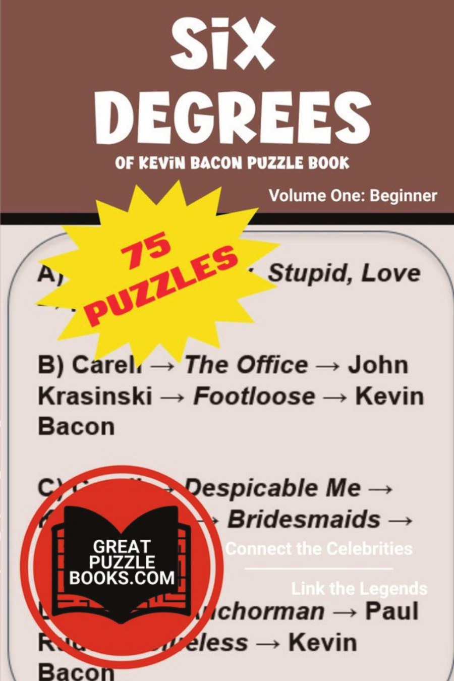 In this beginner-friendly Six Degrees Puzzle Book, you'll connect your favorite movie and TV stars through the roles they've played, the shows they've starred in, and the co-stars they've shared on screen. Each puzzle challenges you to link two names using a short chain of movies, TV shows, or co-stars-just like the classic "six degrees" party game, but designed as a fun, replayable puzzle experience.