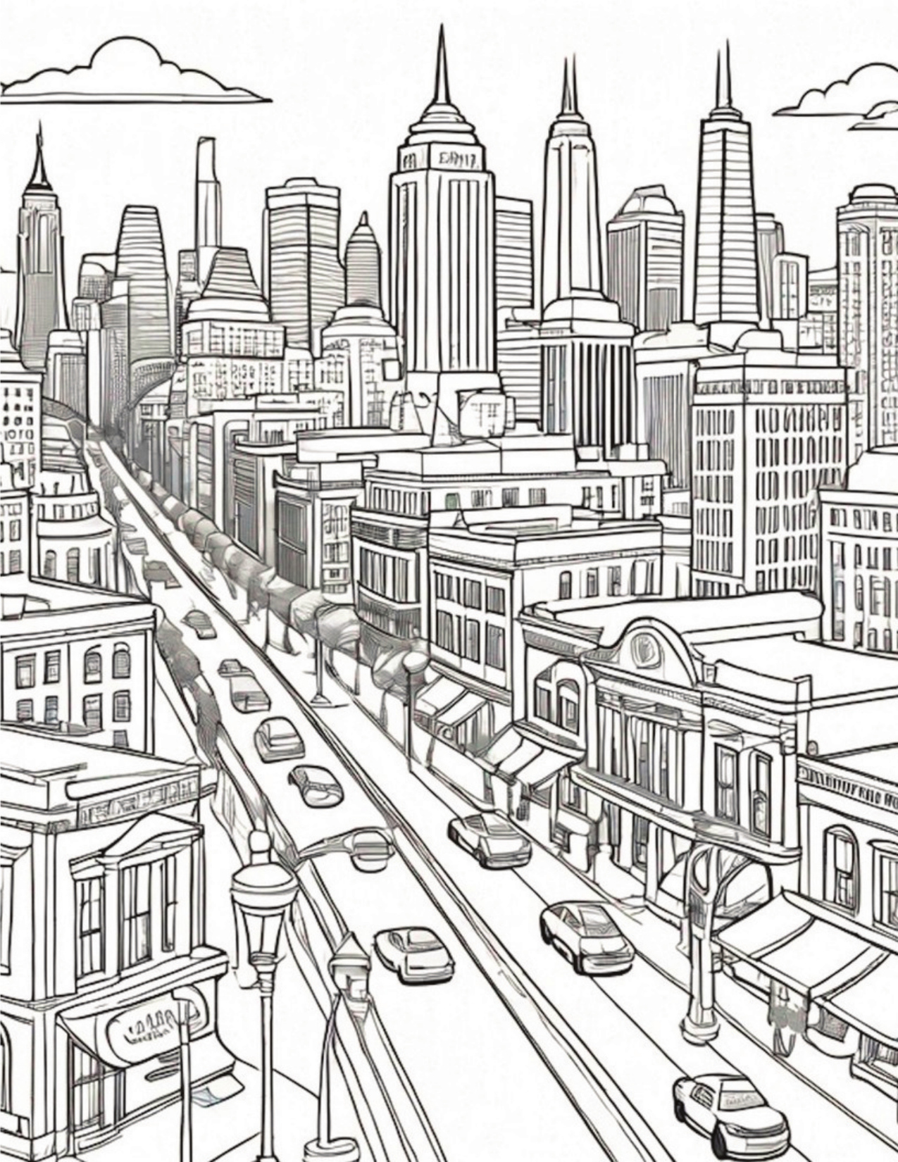 Suitable for printing and enjoying with your favorite coloring supplies, this book transforms city scenes into a personal masterpiece—one stroke at a time