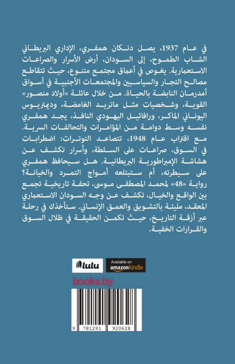 رواية «48» لمحمد المصطفى موسى، تحفة تاريخية تجمع بين الواقع والخيال، تكشف عن وجه السودان الاستعماري المعقد، مليئة بالتشويق والعمق الإنساني. ستأخذك في رحلة عبر أزقة التاريخ، حيث تكمن الحقيقة في ظلال السوق والقرارات الخفية
